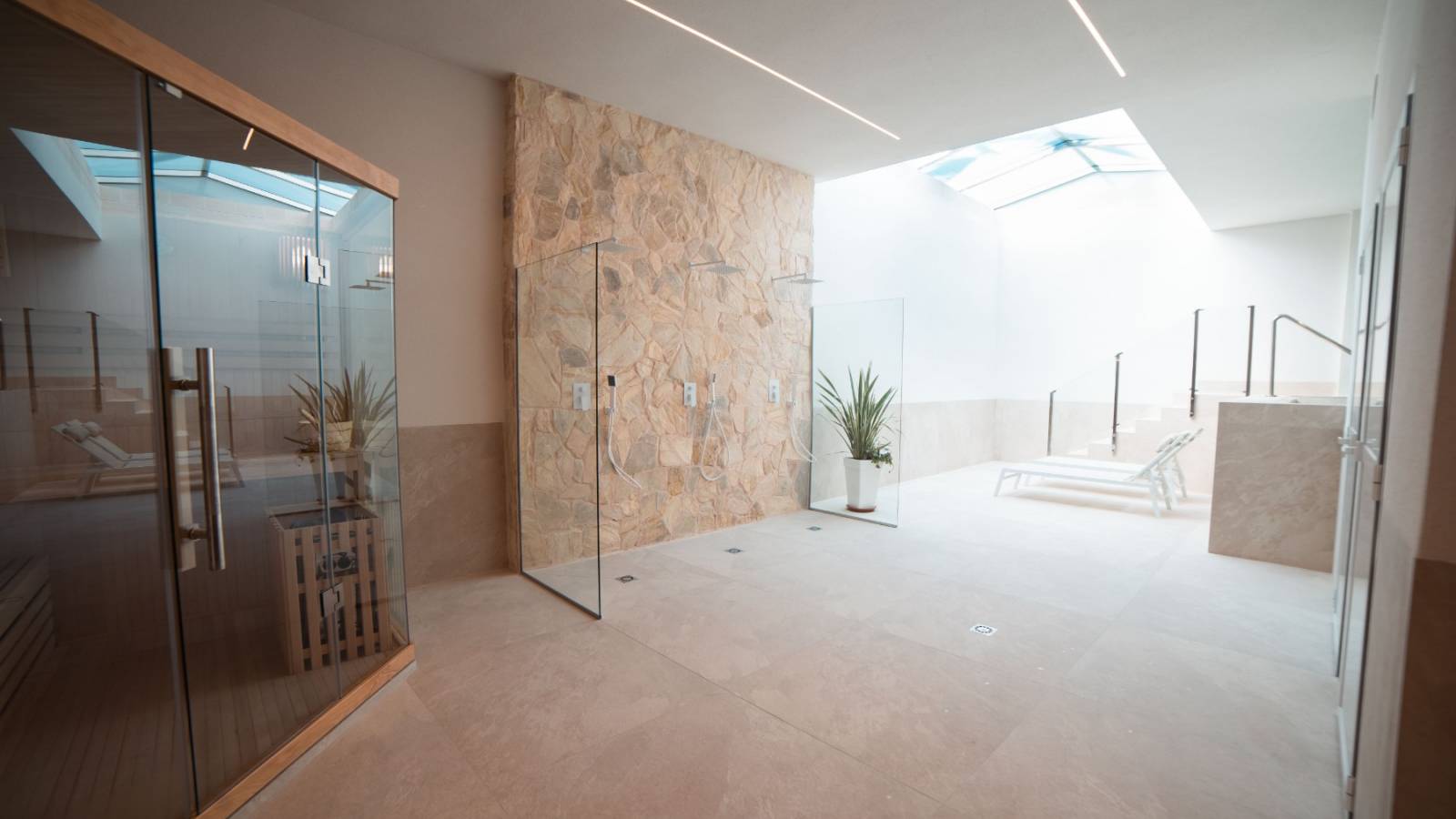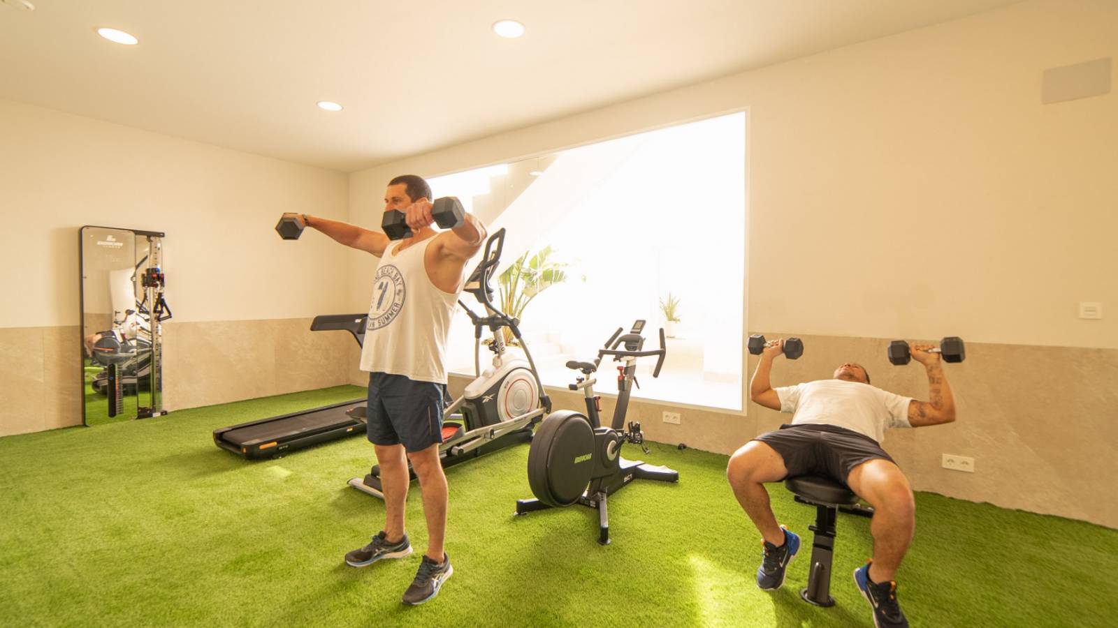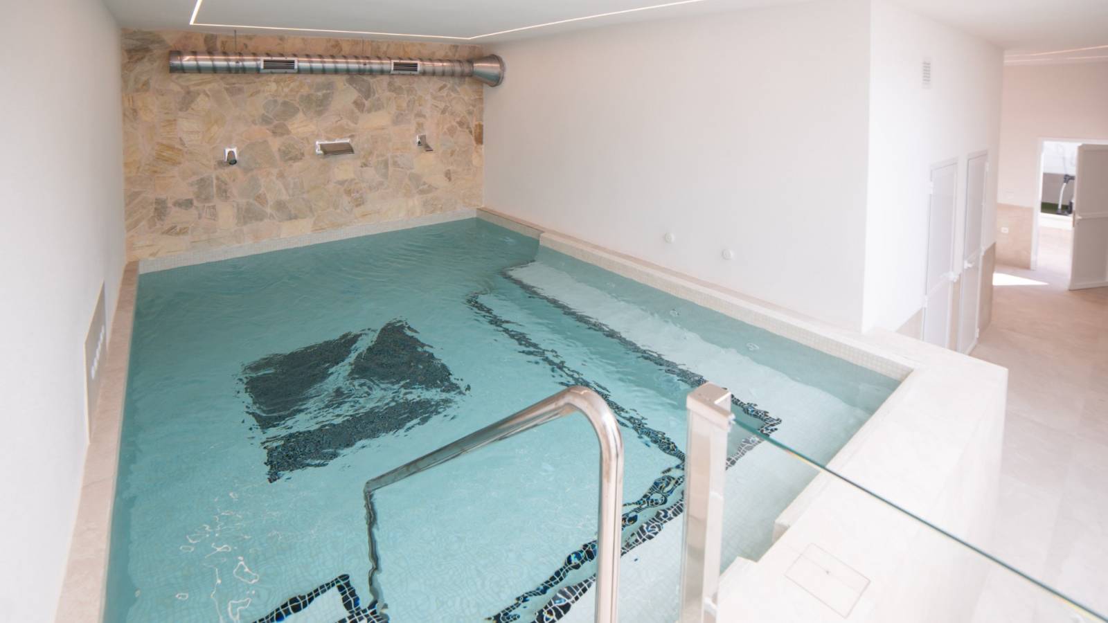Un complejo con un patio interior muy grande con una gran piscina en el centro, muy popular entre los bañistas. En el patio también hay un parque infantil, un minigolf y una zona de fitness.