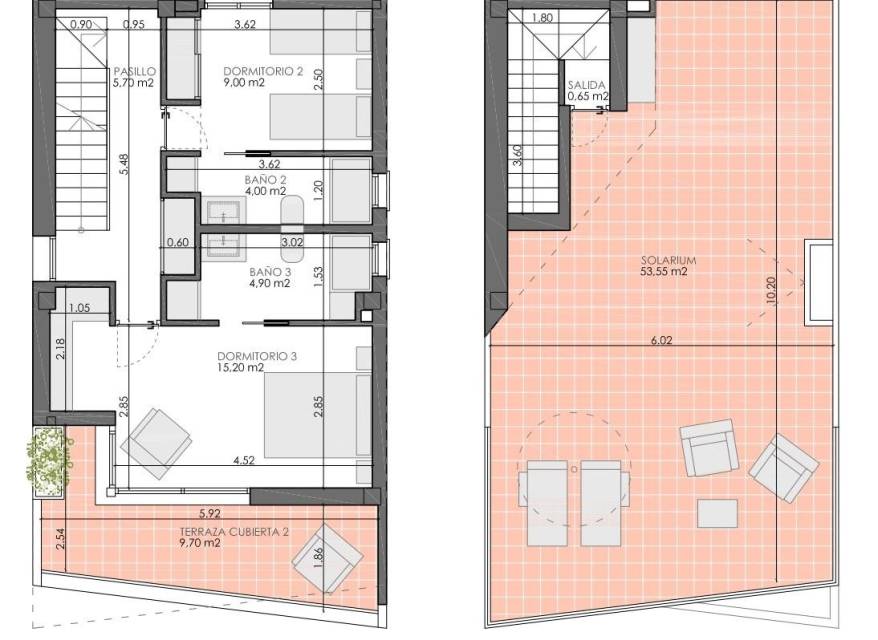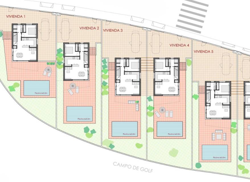 Villas de 3 Dormitorios y 3 Baños en parcela privada con piscina privada, parking y terraza con solarium y cocina de verano.