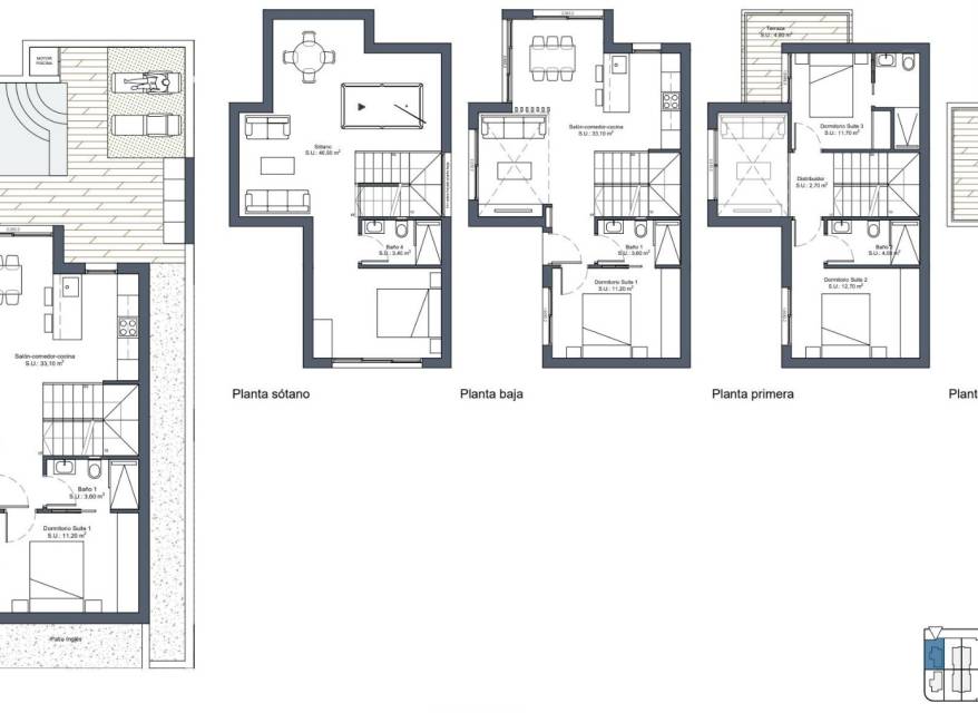 Cada villa ha sido cuidadosamente diseñada con atención al detalle y acabados de alta calidad. Estas hermosas villas orientadas al sur están equipadas con comodidades modernas como aire acondicionado (frío / calor), persianas eléctricas, iluminación interior y exterior completa y baños y cocinas totalmente equipados.