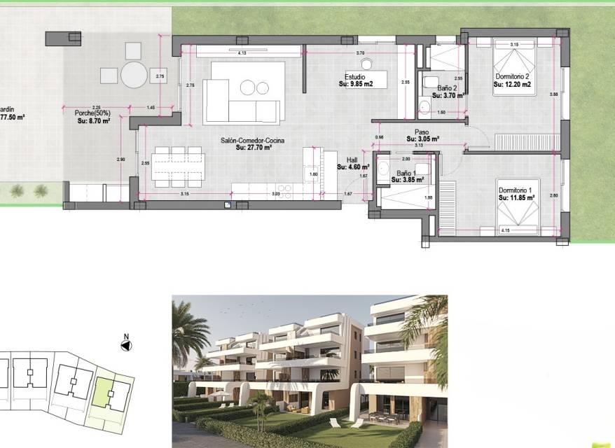 Esta impresionante promoción ofrece modernos pisos distribuidos en tres plantas, cada uno con una amplia terraza, áticos con cocina de verano y acceso a una gran cantidad de servicios.