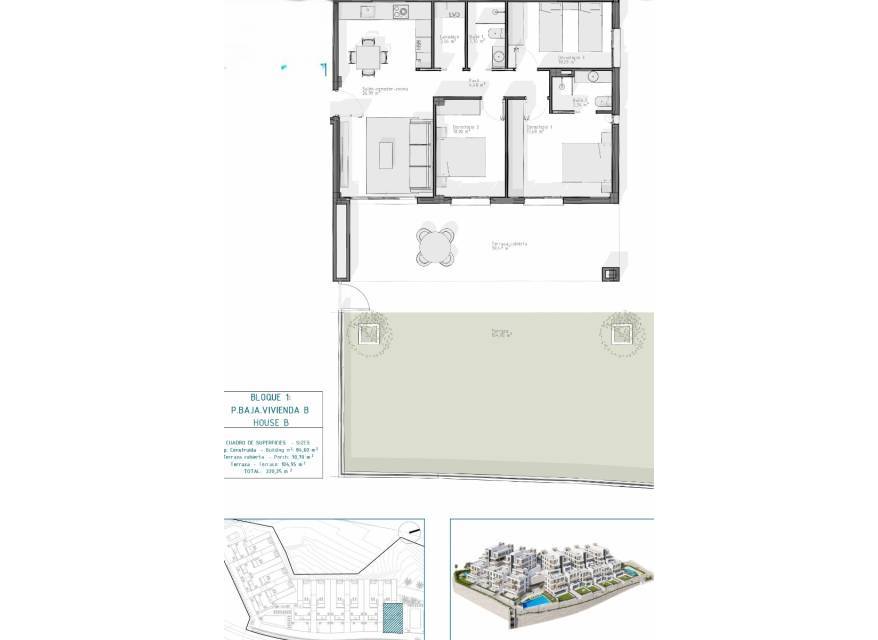 Dans la première phase, nous lançons 2 blocs comprenant au total 60 appartements élégants avec 2 ou 3 chambres, tous conçus avec soin pour offrir confort, espace et vue. Vous vivrez ici dans un emplacement privilégié, à courte distance des vastes plages de Vera Playa, au sein d’un quartier résidentiel privé : Urbanización Pueblo Salinas.