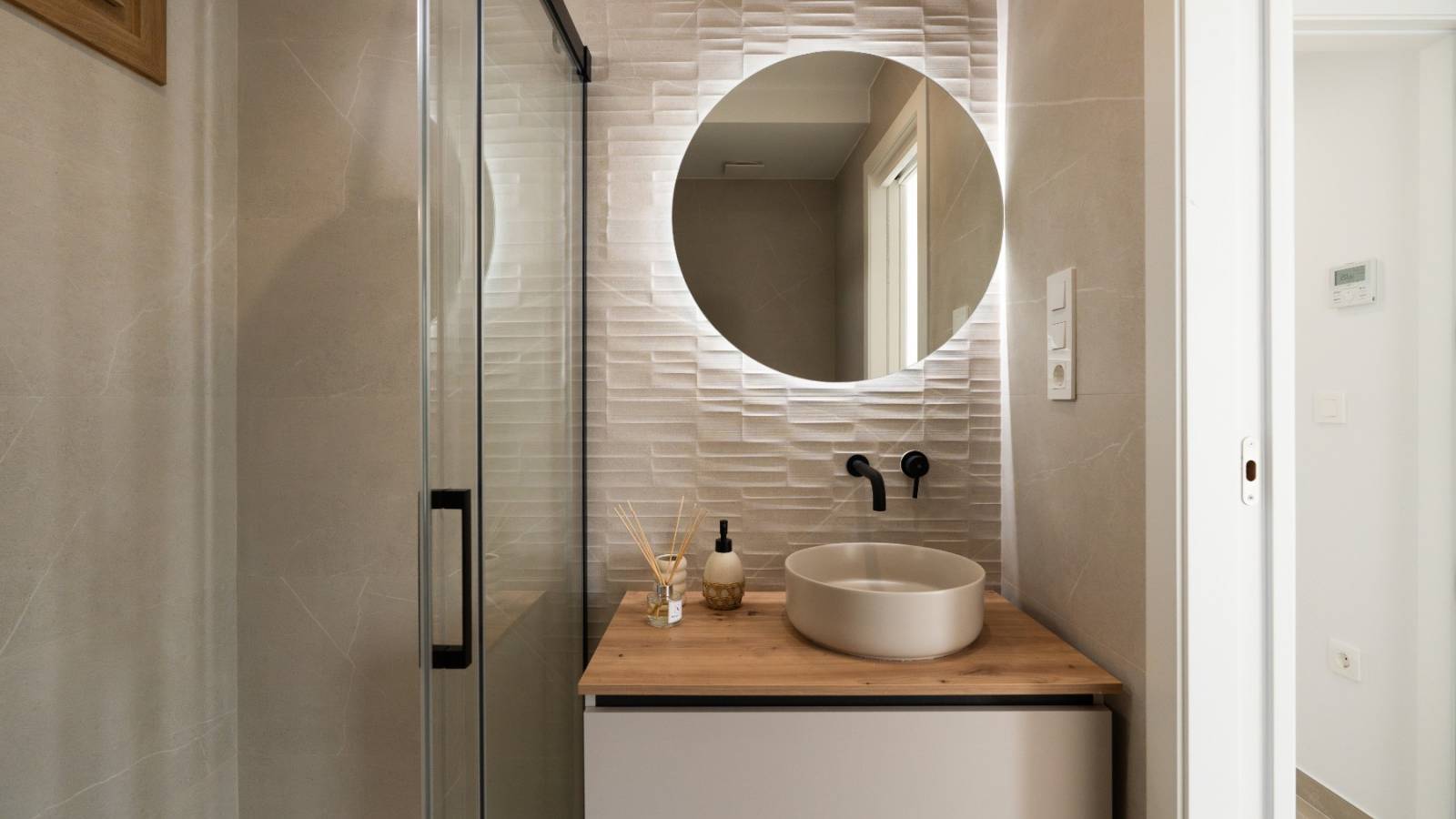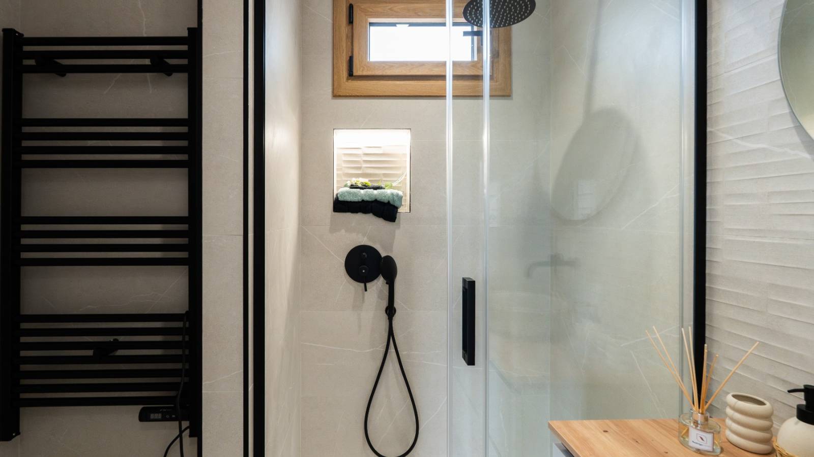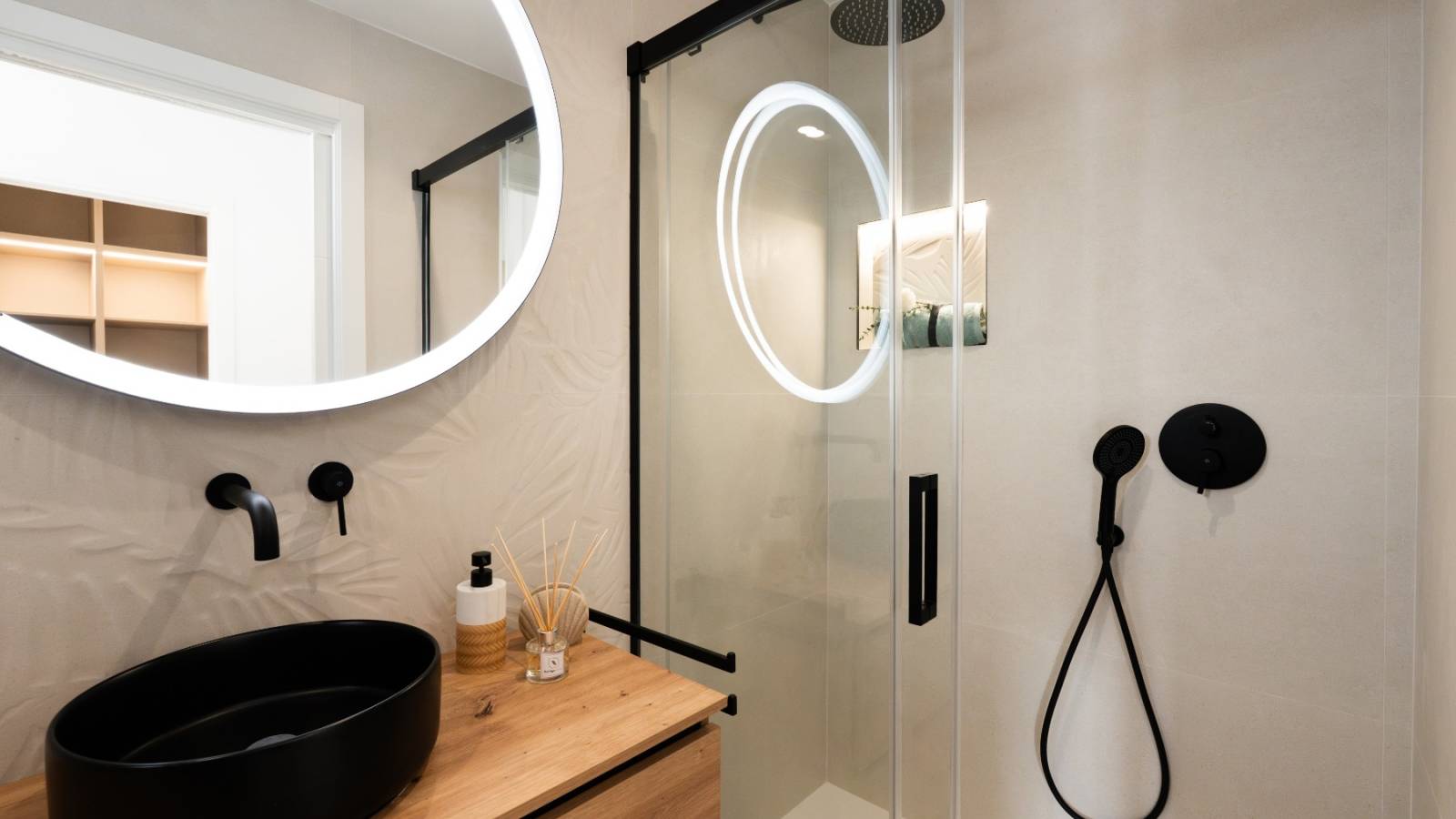 Entièrement meublé, avec un dressing dans la chambre principale et des salles de bains exclusives équipées de sèche-serviettes électriques (sauf la salle de bains extérieure). Le concept d'éclairage renforce l'atmosphère élégante et confortable.