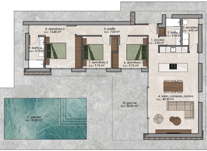 Le prix du terrain n’est pas inclus dans le prix de la villa.