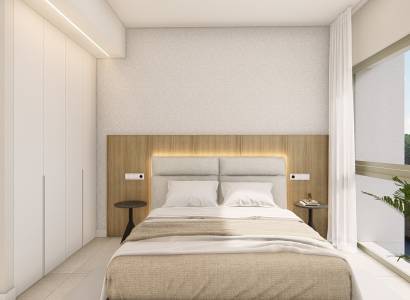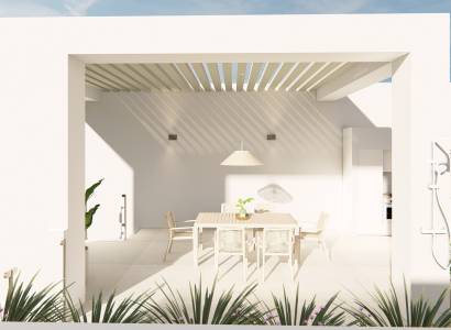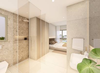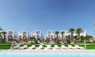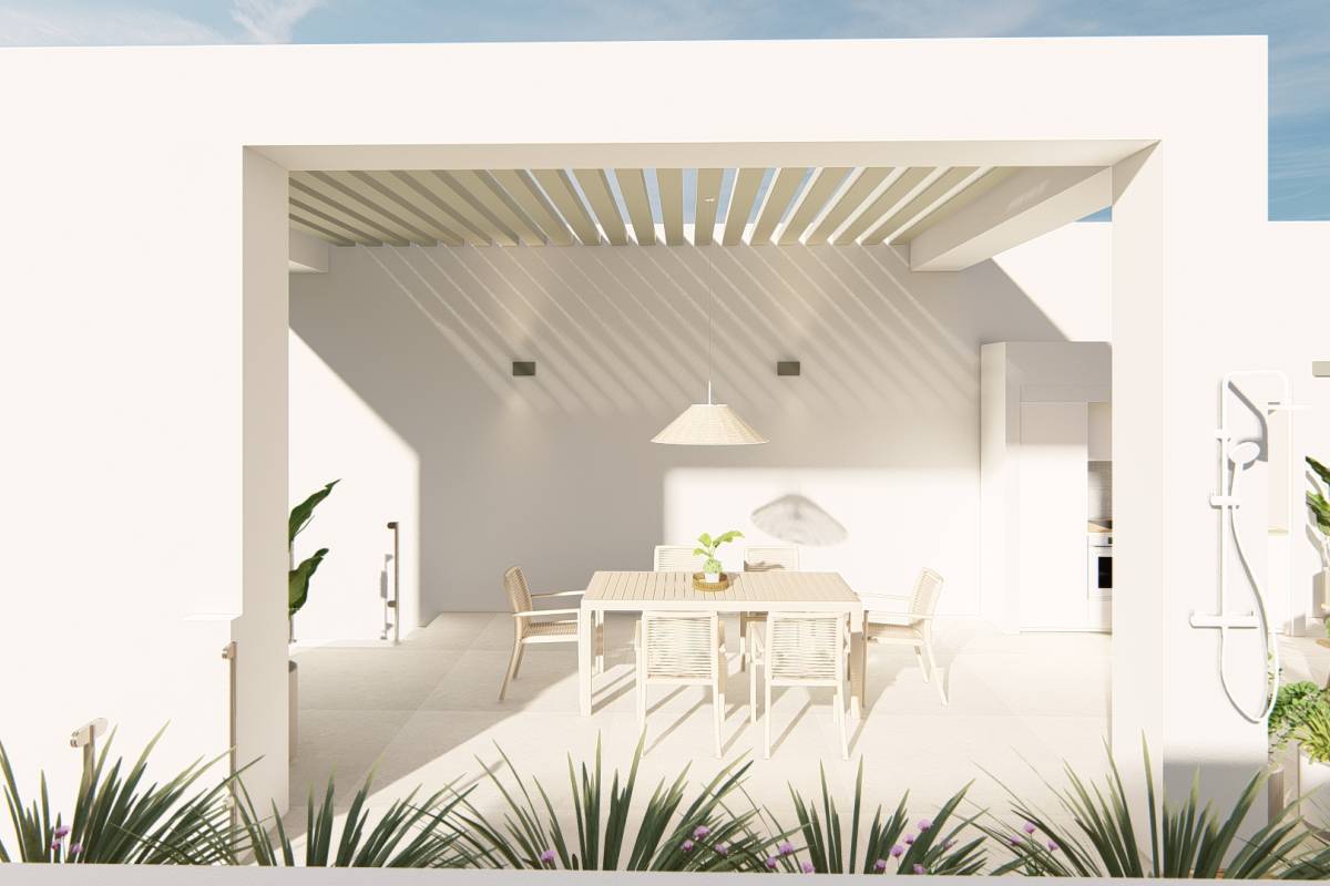Deze bungalows zijn uitgerust met moderne voorzieningen zoals elektrische rolluiken en een video-intercomsysteem, wat zowel comfort als veiligheid verhoogt. Met inbegrepen huishoudelijke apparaten is het installeren in uw nieuwe huis naadloos en stressvrij. Hoewel er geen privézwembaden of jacuzzi's zijn, bieden de gemeenschapsvoorzieningen volop mogelijkheden voor recreatie en ontspanning.