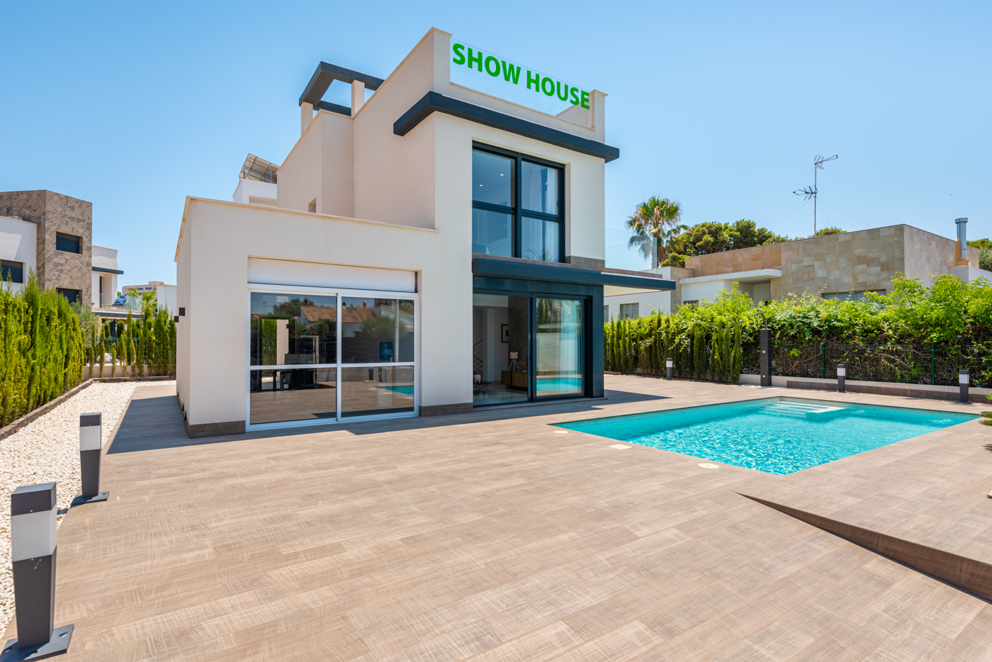 Geniet van de luxe van een privézwembad en terras, ideaal om te ontspannen of bijeenkomsten te organiseren. Het solarium biedt een schitterende ruimte om te zonnebaden of sterren te kijken, wat het een perfecte aanvulling op uw levensstijl maakt. Gelegen op slechts 1,0 kilometer van de zee, bieden deze woningen gemakkelijke toegang tot het strand, perfect voor oceaanliefhebbers.