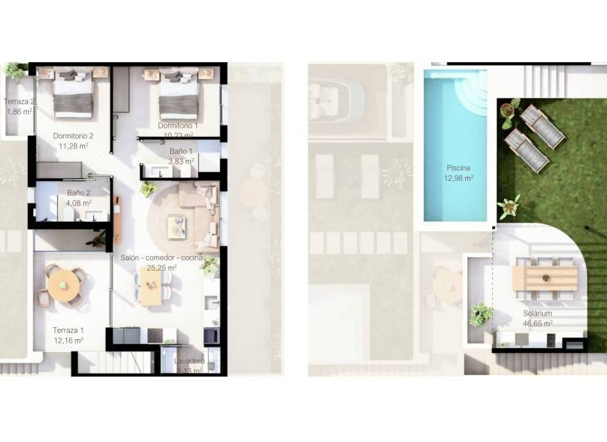 Odkryj Alma Bungalows, kameralny projekt nowoczesnych mieszkań 2-pokojowych z prywatnym basenem w sercu San Pedro del Pinatar, zaledwie 5 minut spacerem od plaży i blisko portu Lo Pagán.