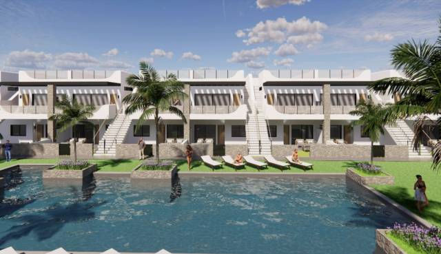 18 ground floor Apartments with garage for sale in Torrevieja with a very nice tropical communal pool and garden.
